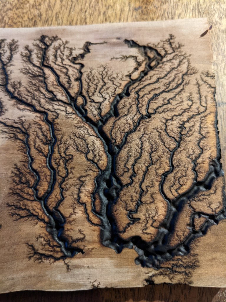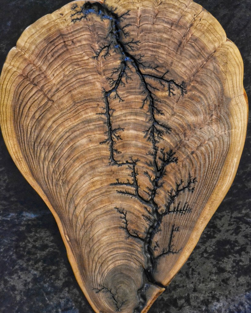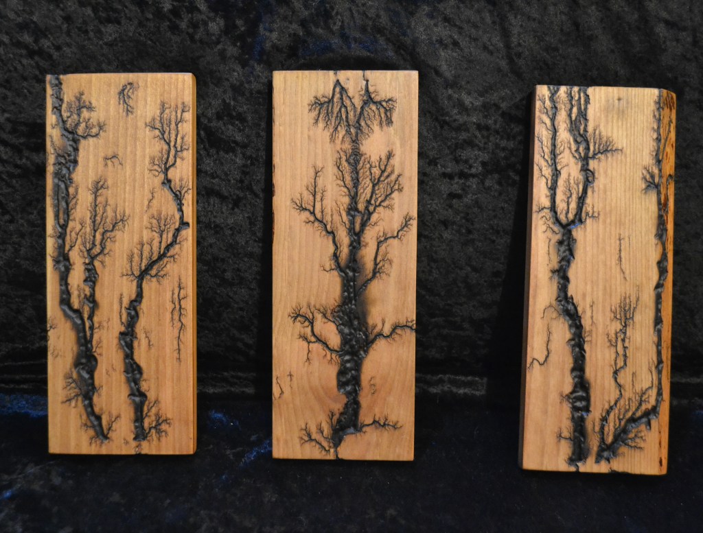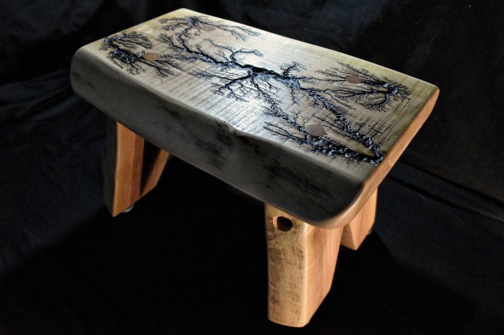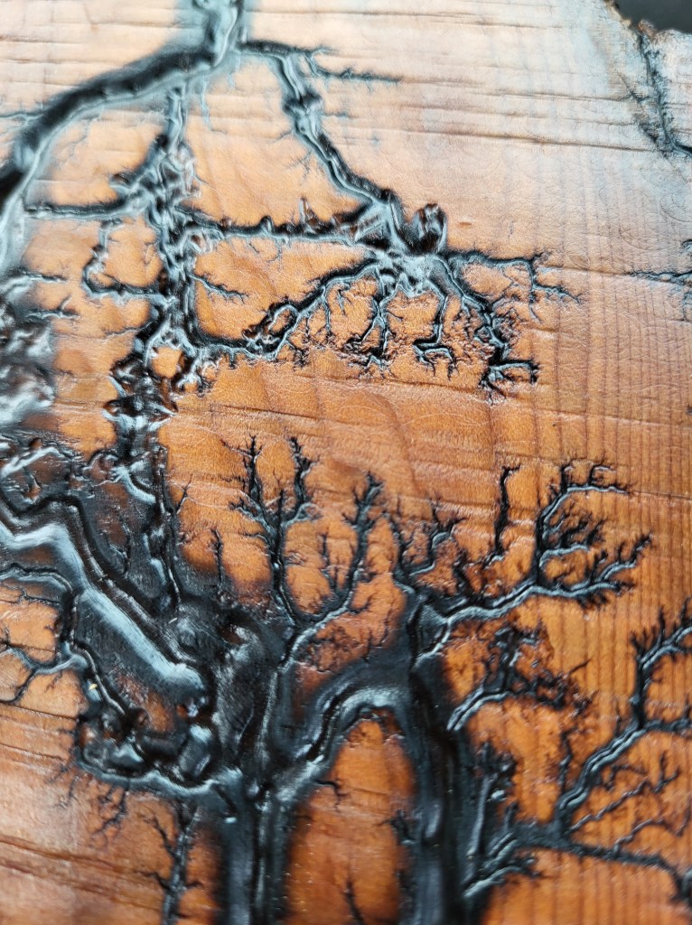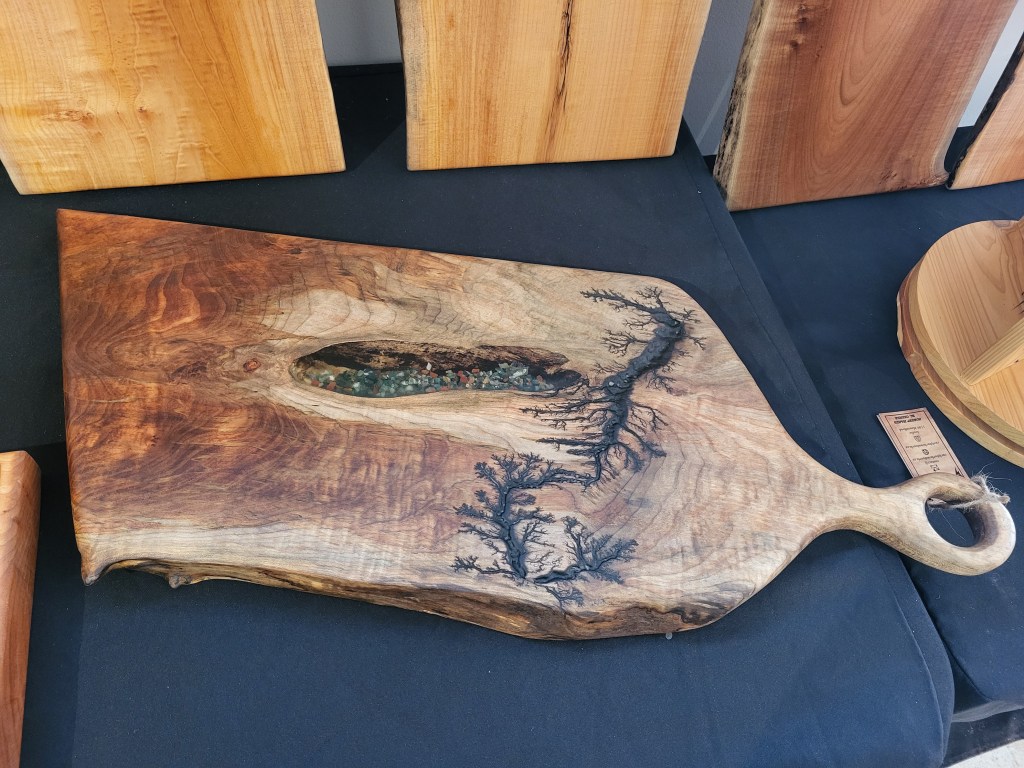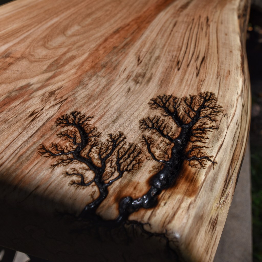 Along with our wooden utensils and cutting boards, we also specialize in Lichtenberg art — a process that uses high-voltage electricity to burn unique fractal patterns into wood.