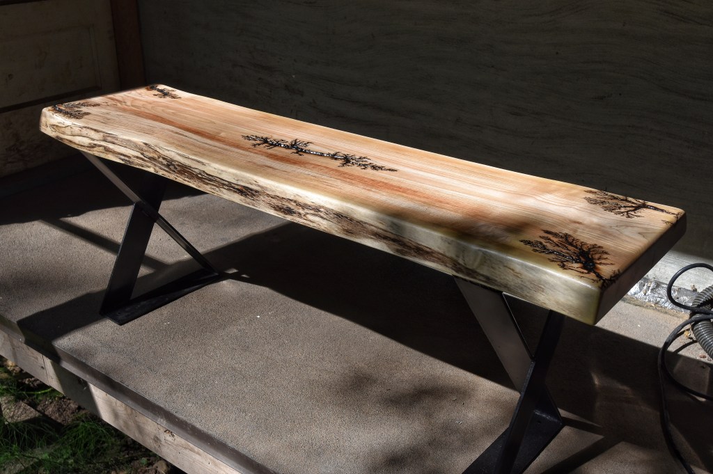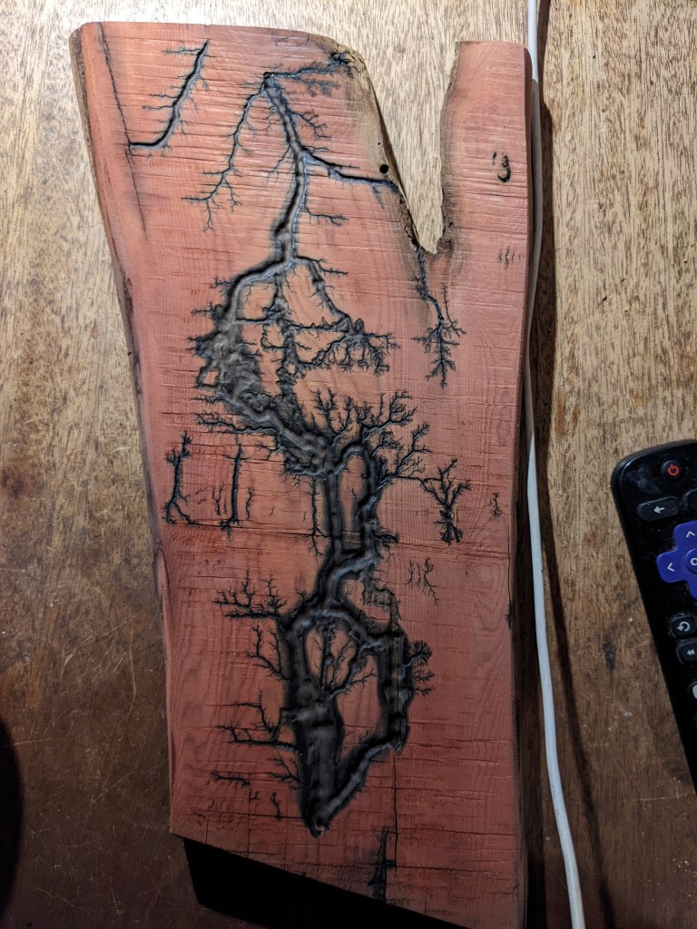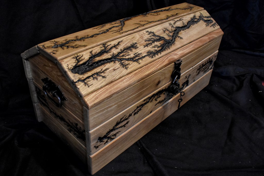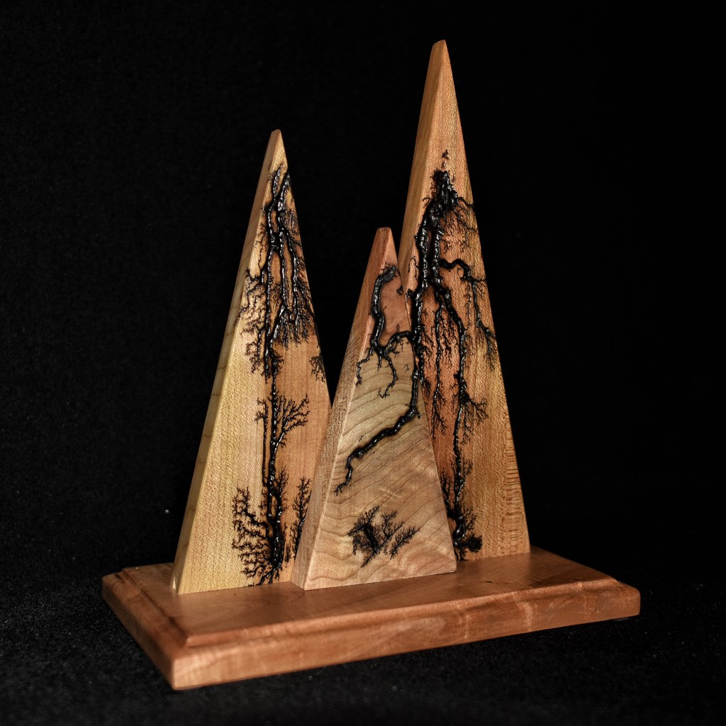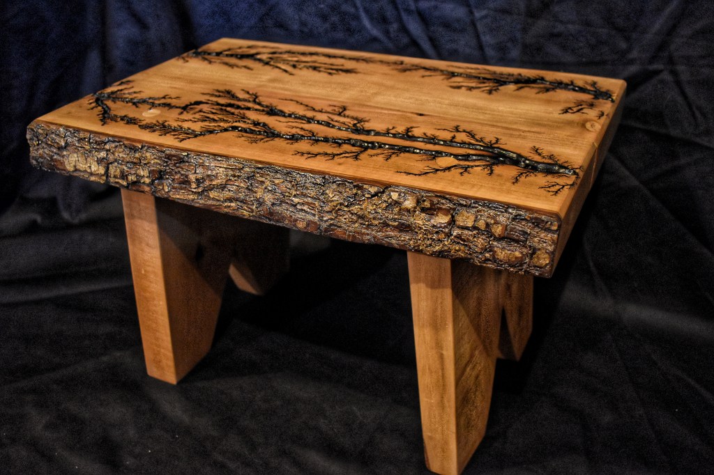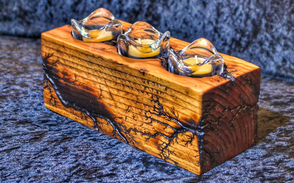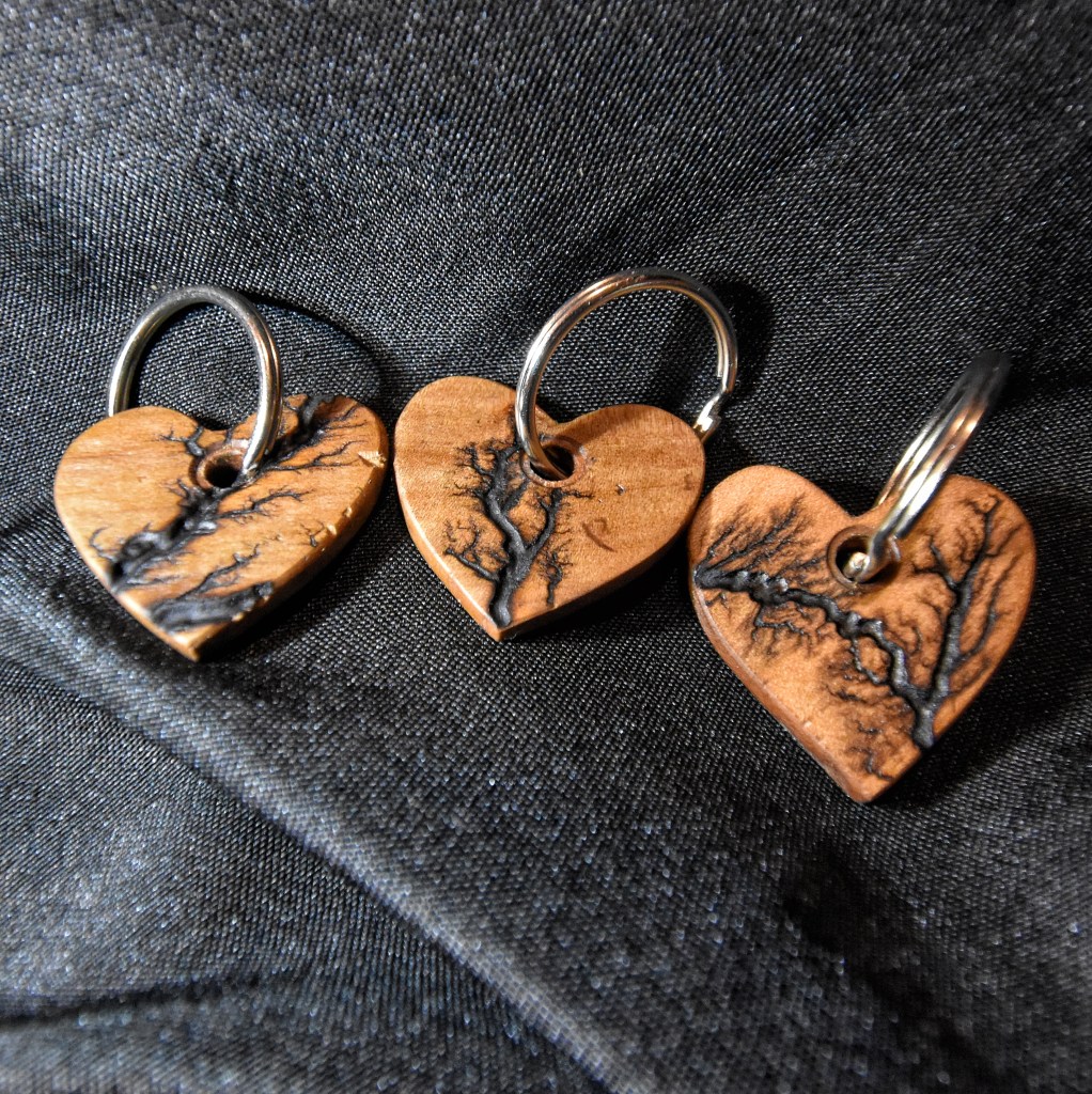 Along with our wooden utensils and cutting boards, we also specialize in Lichtenberg art — a process that uses high-voltage electricity to burn unique fractal patterns into wood.